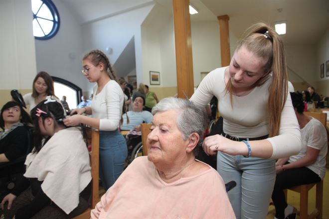 Učenice 2. razreda frizerskog smjera Srednje škole Oroslvje svake godine pred blagdane uveseljavaju štićenike Centra za rehabilitaciju u Pustodolu novim frizurama