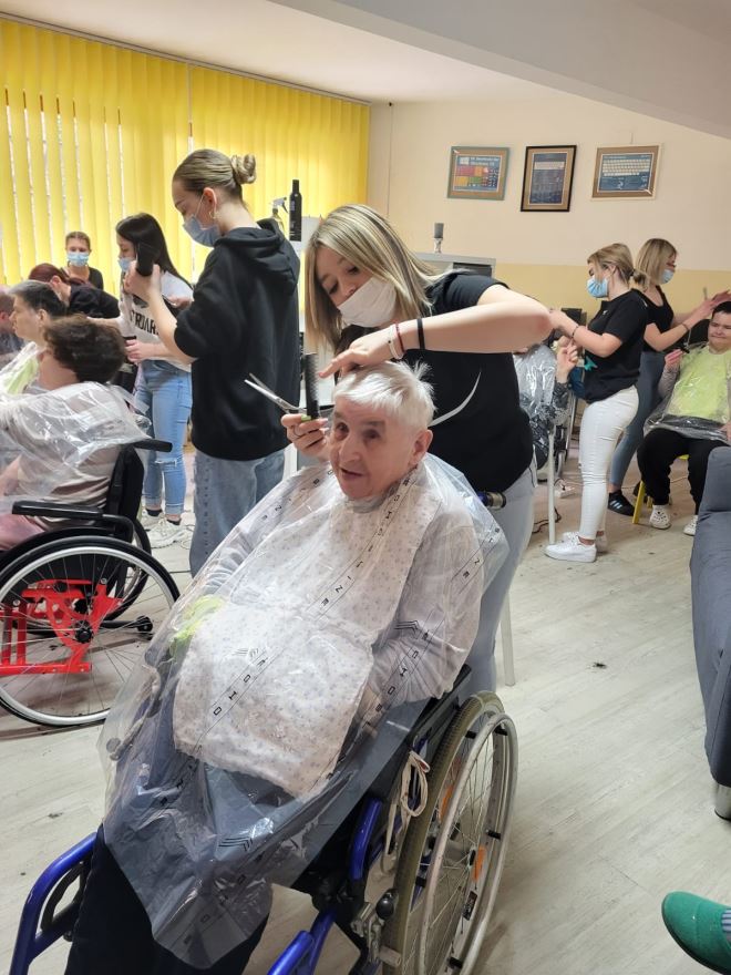 Jedanaest budućih frizerki razveselilo je štićenike i štićenice doma novim frizurama, šišanjem i bojanjem kose, a sve u sklopu praktične izvanučioničke nastave i tehnoloških vježbi.