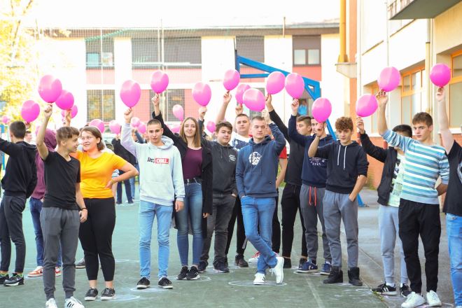 U sklopu projekta 18. listopada snimljena je i zajednička fotografija učenika škole. Učenici su svojim tijelima formirali natpis „Mama, budi zdrava“, a svatko je u ruci držao ružičasti balon. Na taj način učenici su dali simboličnu podršku oboljelima i ukazali na važnost ranog otkrivanja raka dojke.