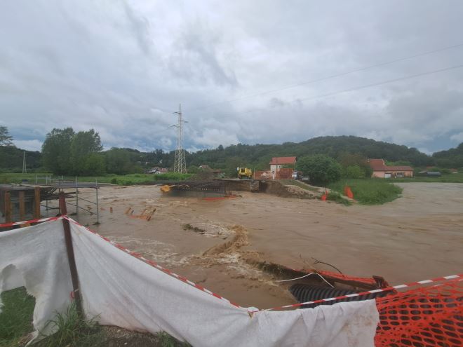 Voda je upravo odnijela pješački, drveni most, koji je postavljen u Vukšincu U Donjoj Stubici, na gradilištu novog mosta.