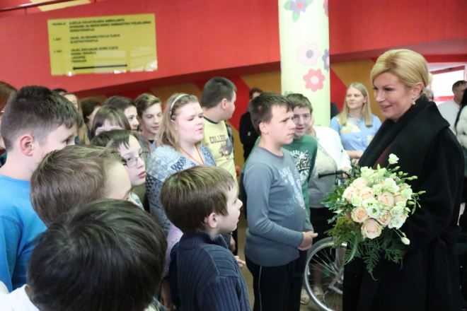 Kolinda Grabar – Kitarović obišla je Specijalnu bolnicu za medicinsku rehabilitaciju, a nakon toga posjetila je Centar za odgoj i obrazovanje gdje su je dočekala djeca, učitelji, odgojitelji i roditelji. U jednoj od učionica s učenikom je zaigrala i interaktivnu igru, a posebnu su je ganule dvije djevojčice koje su joj poželjele dobrodošlicu.