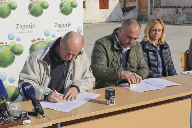 Župan Željko Kolar i Zvonimir Galić, direktor tvrtke Zagorjegradnja, potpisali su danas 22,7 milijuna vrijedan ugovor o izgradnji nove sportske dvorane kod Osnovne škole Zlatar Bistrica