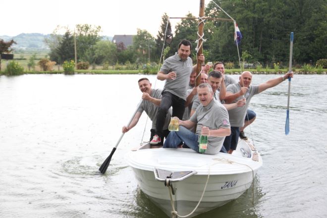 – Svugdje smo bili, samo muška ekipa, nas devetorica,a na skijanje obavezno nosimo i promoviramo naše zagorsko vino – rekao je još. Svojevrsni zaštitni znak udruge je i čamac kojim plove Šalecovim ribnjacima. – Prije deset godina imali smo porinuće toga čamca. Bila je zima, nas 6 u čamcu, voda do vrha, nitko se nije smio pomaknuti. A onda se naš advokat nagnul, voda je počela zalijevati čamac i svi smo potonuli, a onda doma k meni na tuširanje i sušenje – prisjetio se, jednako kao i anegdote kad su išli na skijanje u Austriju gdje je skijao naš Ivica Kostelić.
