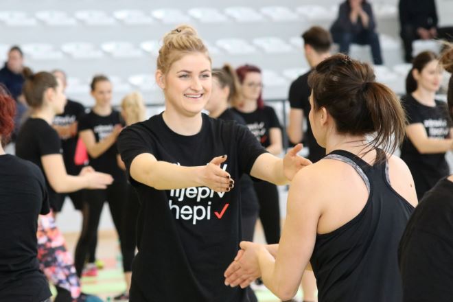 Nikad veći broj prijavljenih vježbača u zatvorenom prostoru i nikad žešći trening. Tako bismo mogli opisati današnje događanje projekta Aktivna Hrvatska u zabočkoj sportskoj dvorani. Riječ je o sportsko – edukativnom projektu koji se održava se pod pokroviteljstvom Predsjednice RH Kolinde Grabar – Kitarović te educira građane Hrvatske, potiče na aktivnost, razmjenu iskustva i podiže kvalitetu života. Stručni partneri projekta su Kineziološki fakultet Sveučilišta u Zagrebu, Hrvatska liječnička komora, Biotrening i Definicija Hrane, a njegovo zaštitno lice i jedna od idejnih začetnika je Renata Sopek. Za zagorje.com je rekla kako je izrazito ponosna što su se prijave za događaj u Zaboku zatvorile već za nekoliko dana zbog velikog broja prijava. - Ponosna sam na nas Zagorce, jer i ja sam vaša Zagorka, i znala sam da će to ovako ispasti. Čak dvjesto vježbača najveći je prijava u zatvorenom prostoru u sedam godina projekta - rekla je Sopek dodajući kako su vježbe pogodno da sve dobne skupine, a glavni je cilj biti aktivna i prenijeti tu misao dalje.