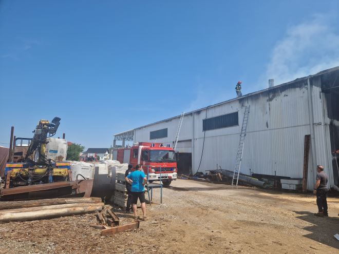 U ponedjeljak prijepodne izbio je požar na poslovnom objektu tvrtke Kooperacija Golub, koja se u Svetom Križu Začretju bavi obradom drva.