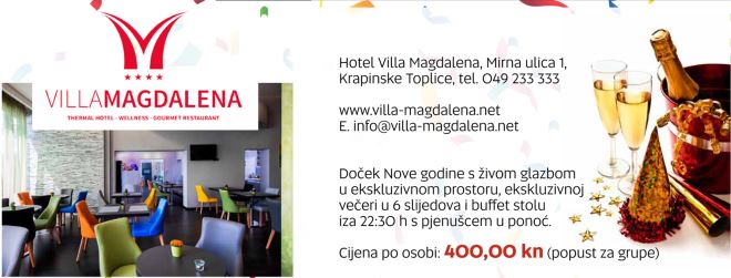 Sve je spremna za najluđu noć u godini – doček nove 2018. godine. Barem ako je suditi prema programima restorana i hotela u Zagorju koji su i ove godine pripremili raznovrstan program. Ukusna hrana, dobra glazba i pristupačne cijene – tri su značajke koje nude zagorski restorani i hoteli. Na vama je samo da pronađete dobro i ugodno društvo te da izaberete ponudu koja vam najbolje odgovara. Izdvojili bismo dočeke u Villi Magdaleni u Krapinskim Toplicama, na Vuglec bregu u Šakrićevom, Punkt Beer Houseu u Mokricama, Hotelu Matija Gubec u Stubičkim Toplicama i Bluesun hotelu Kaj iz Marije Bistrice.