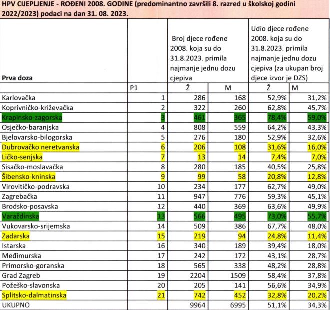 Krapinsko – zagorska županija prva je po procijepljenosti protiv HPV virusa u Hrvatskoj. Roditelji učenika osmih razreda prepoznali su značaj ovog cjepiva, u sprječavanju oboljenja od raka spolnih organa muškaraca i žena, potvrdio nam je to dr. med. spec. školske medinice Husen Ramadani, voditelj Odjela školske medicine Zavoda za javno zdravstvo Krapinsko – zagorske županije.
