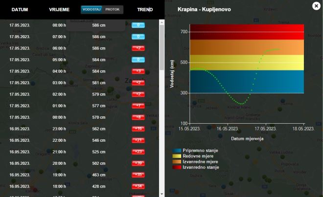 Vodostaj rijeke Krapine, izmjeren kod Kupljenova, jutros u 8:00 sati iznosi je 586 centimetara.
