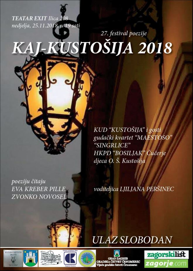 Dobro došli u nedjelju, s početkom u 19 sati, u Teatru Exit na kajkavski festival odnosno, kajkavska glazbena večer i večer kajkavske poezije „KAJ – KUSTOŠIJA 2018.“