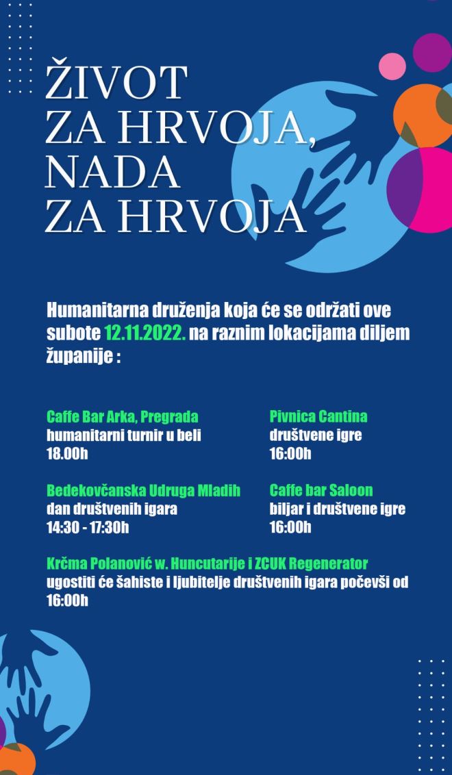 Pregrada – Caffe bar Arka – od 18 sati - Humanitarni turnir u Beli. Prijave su moguće ovdje.