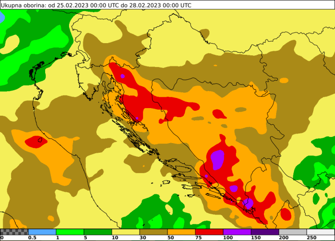 Najviše oborine predviđa se od subote do ponedjeljka, nerijetko bi moglo pasti više od 50 mm. Uz jako zahladnjenje u unutrašnjosti će značajni dio te oborine biti u obliku snijega, a u gorju se upozorava na obilniji snijeg, osobito u nedjelju, kad može pasti i više od 30 cm.