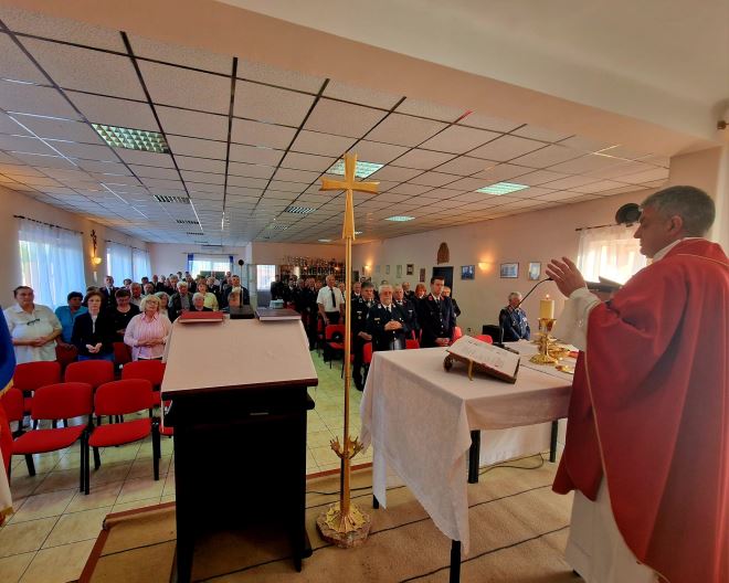 Vlč. Branko Risek je dočekao vatrogasce ispred doma gdje su se postrojili pa se uz sviranje glazbe krenulo u sakralni prostor doma gdje se održalo misno slavlje.