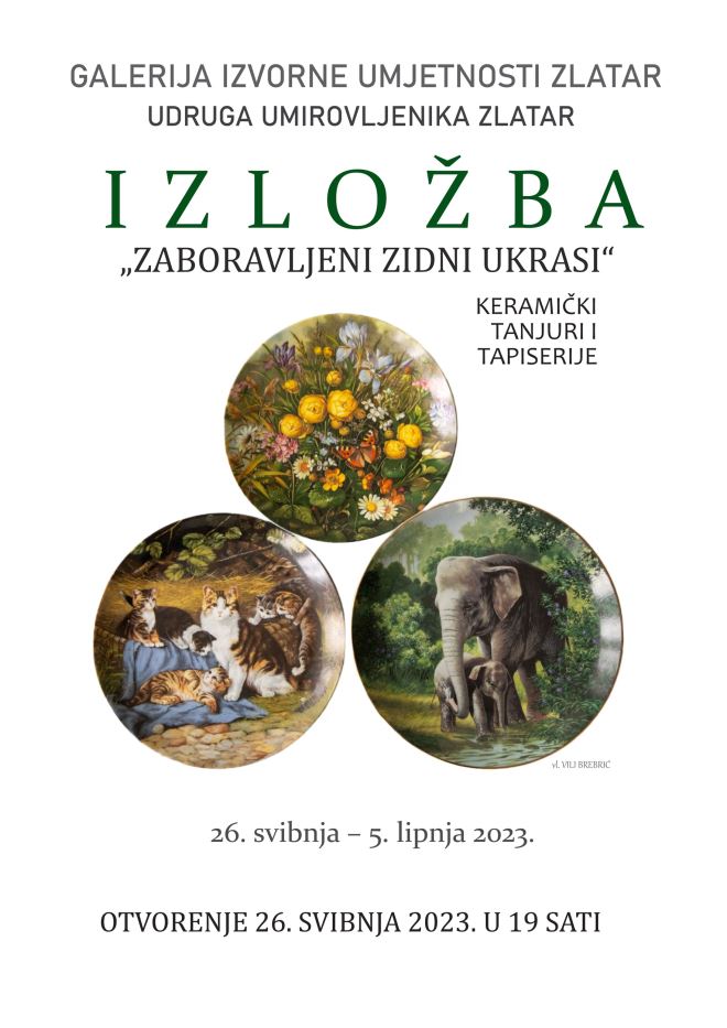 Pročelnik Jedinstvenog upravnog odjela Grada Zlatara, dr. Mladen Krušelj, u petak je u zlatarskoj Galeriji izvorne umjetnosti otvorio neobičnu izložbu. Naime, Udruga umirovljenika, u uspješnoj suradnji s Galerijom Izvorne umjetnosti, svakoga proljeća organizira likovni događaj. Jedne godine izložili su stare, požutjele fotografije vjenčanja svojih baka i djedova, zatim su galerijski zidovi bili ukrašeni likovnim radovima umirovljenika s područja Krapinsko-zagorske županije koji se slikanjem bave kao hobijem, a nisu izostali ni gobleni koje su mlađi naraštaji sa zidova svojih domova „preselili“ u podrum ili tavan! Zamijenile su ih slike, a u mlađih posteri.