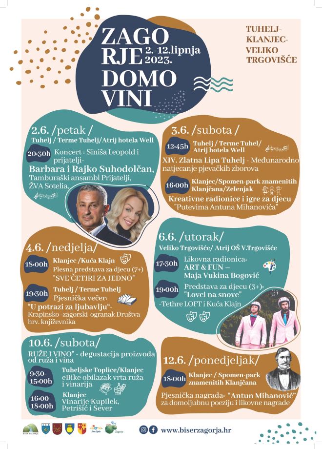 U petak 2. lipnja kreću događanja u sklopu manifestacije ''Zagorje Domovini'' posvećenim piscu hrvatske himne – Antunu Mihanoviću a koje će se odvijati na prostoru Tuhlja, Klanjca i Trgovišća! Samo događanje domoljubne je tematike sa naglaskom na očuvanju kulture, umjetnosti