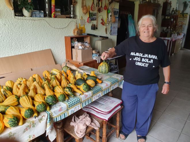 „Tko je sve ovo napravio?“, pitamo domaćicu. „Ja, a tko drugi“, nasmijala se od srca Mara koja svoje umirovljeničke dane provodi izrađujući ukrasne i uporabne predmete od tikvica koje, napominje, nisu za jelo, nego služe za ukras. Nazivi tikvica su razni i doslovno se razlikuju od sela do sela.