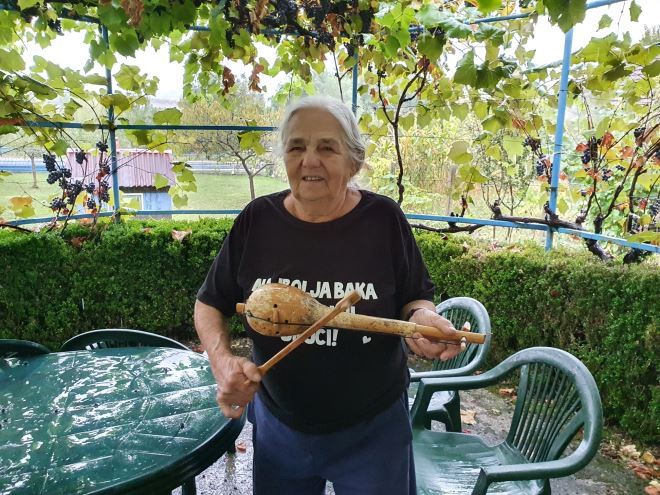 „Imala sam nekoliko skupina kojima sam ovo proljeće pojašnjavala i pokazivala što radim. Bio je veliki interes i polaznici su drage volje sa mnom oblikovali tikvice. Bilo je jako zanimljivo“, veselo nam priča Mara i uzima u ruke gusle koje je isto tako sama napravila i izlazi van. Iako je na dan kad smo bili Marini gosti pljuštala kiša kao da stiže smak svijeta, ona nam mirno pozira ispod brajde u svom dvorištu.