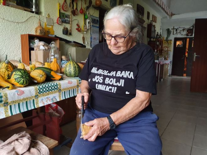 Mara se i pred nama odmah primila posla i stala je obrađivati tikvice koje je naručila. Kaže da ne mjeri koliko joj vremena treba kako bi nešto završila. Sve ovisi kako je raspoložena taj dan i kako joj stvari idu od ruke.