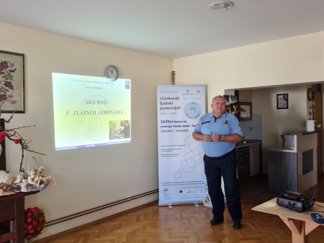 Predavanje je bilo usmjereno podizanju osobnog osjećaja sigurnosti osoba starije životne dobi te unaprjeđenja sveukupne kvalitete života u zajednici, a održano je za korisnike programa s temama 'Nasilje u obitelji', 'Prometne sigurnosti - biciklisti i pješaci' te 'Prijevare'.