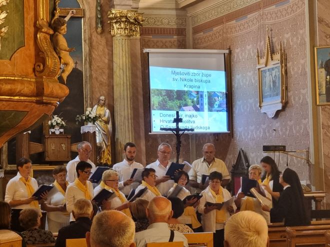 Na smotri uz domaćine župni mješoviti zbor župe Uzvišenja Svetoga Križa nastupili su: župni zbor sv. Nikole biskupa Krapina, mješoviti zbor župe Sv. Jelene Križarice Zabok, župni zbor župe Presvetog Trojstva Krapinske Toplice, župni zbor sv. Mihovil Mihovljan i crkveni mješoviti zbor župe BDM od Sedam Žalosti Veliko Trgovišće koji su svojim skladnim pjevanjem uveličali samo misno slavlje.