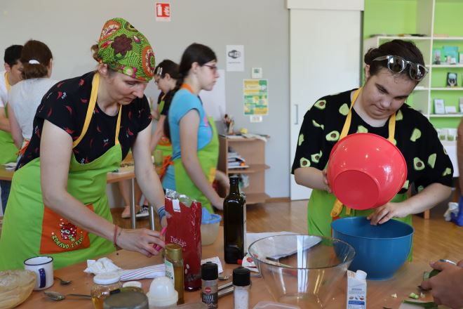 Napravili su razne smoothieje, namaze, umake, tortilje, voćne ježeke i tortu od badema s jagodama, a u radionice su se uključile nove generacije klinaca i klinceza, malih Zabočana koji su željni naučiti kako kuhati i jesti zdravo i fino, a sve uz pomoć volontera Anke, Vjeke, Jane, Mije, Megi i voditeljice radionica kuhanja Snježane.