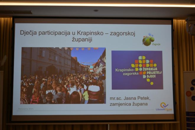Zamjenica župana Jasna Petek je u sklopu Konferencije županija održala predavanje „Dječja participacija na primjeru Krapinsko-zagorske županije“ u sklopu kojeg je posebno istaknula da je dječji participativni proračun odlična prilika da se djeci pokaže kako sami mogu mijenjati stvari u svojoj sredini. „Upravo je to tema na kojem gradimo cijelu filozofiju Županije, prijateljice djece. Naime, našoj djeci i mladima pružamo kvalitetno i sigurno okruženje, ali ih i odgajamo da budu odgovorni, aktivni i kreativni članovi zajednice“, istaknula je zamjenica župana Petek te naglasila kako je Krapinsko-zagorska županija u sklopu Dječjeg participativnog proračuna do sada financirala 56 projekta ukupne vrijednosti 128.000 eura.