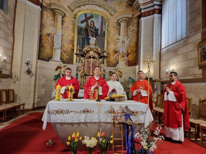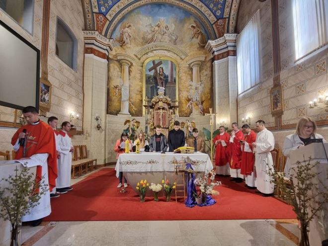 Nekada je postojao običaj umivanja u cvijeću na današnji dan pa vas pozivam da danas i ovoga tjedna svi primijete da smo kršćani, da smo bili „umiveni“ na izvoru Božje ljubavi prema svakom čovjeku, da idemo kroz život s Isusom u svim životnim situacijama. Prečasni Ivica poziva da ne dopustimo da nas ovoga tjedna križ i poteškoće stisnu već da pronađimo snage dignuti se i krenuti dalje jer to je Isus upravo učinio za sve nas. Ovih nekoliko mojih misli neka vam budu poticaj, a ove riječi muke Isusovog života koje smo slušali bude ohrabrenje i nadahnuće. Nikada nemojte zaboraviti da vas Isus voli upravo takvi kakvi jeste i poziva svakoga dana da budemo što više sličniji njemu – zaključuje homiliju preč. Budinšćak. Liturgijsko pjevanje na središnjem nedjeljnom misnom slavlju animirao je zbor mladih župe sv. Jelene Križarice.