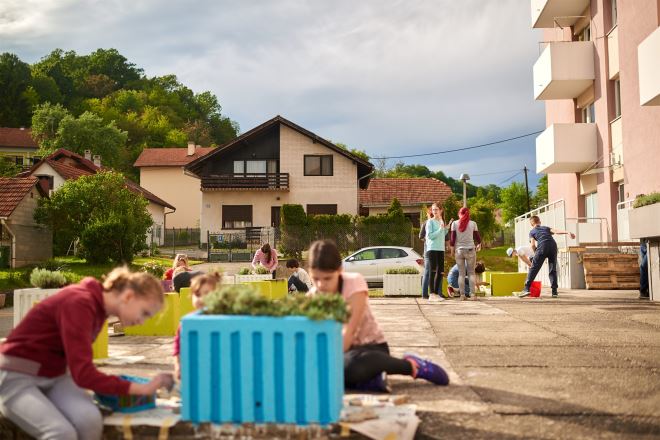U samu realizaciju, uz DND i Gradsku knjižnicu, uključio se Grad Zabok, Udruga hrvatskih dragovoljaca Domovinskog rata KZŽ, članovi Likovne sekcije „Josip Kaltnecker“ i Plavinka Zabok. Kako bi zahvalili svima koji su sudjelovali u volonterskoj akciji i stanarima zgrade koji su cijelo vrijeme davali podršku, DND i Gradska knjižnica organizirali su malo kvartovsko druženje i na taj način obilježili i proslavili završetak zajedničkog volonterskog projekta uređenja vanjskog prostora za održavanje programa „Čitaj mi!“, ali i za razna druga događanja. Organizirano je čitanje priča, a Zabočki mališani izveli su nekoliko svojih hitova od kojih je posebnu pažnju izazvala pjesma Samo volontiraj!, svojevrsna himna posvećena volontiranju, dok su se pjesmama Kad se male ruke slože i Kad si sretan! priključili svi prisutni. Uz druženje svih generacija, mogla se razgledati izložba fotografija koja prikazuje faze uređenja novog prostora, a za djecu su organizirane i zabavne igre.
