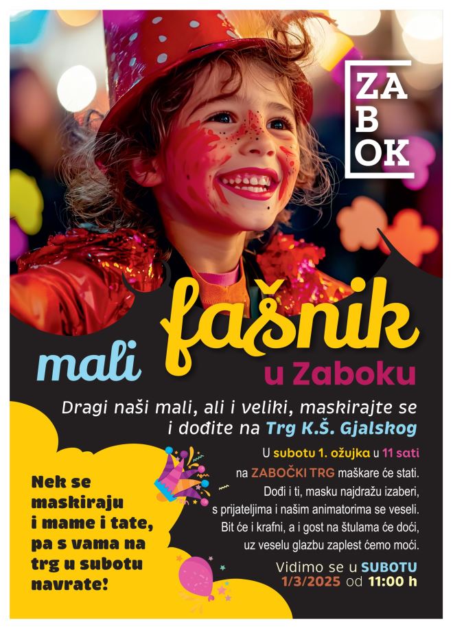 Ove subote 1. ožujka na rasporedu je Mali fašnik u Zaboku.