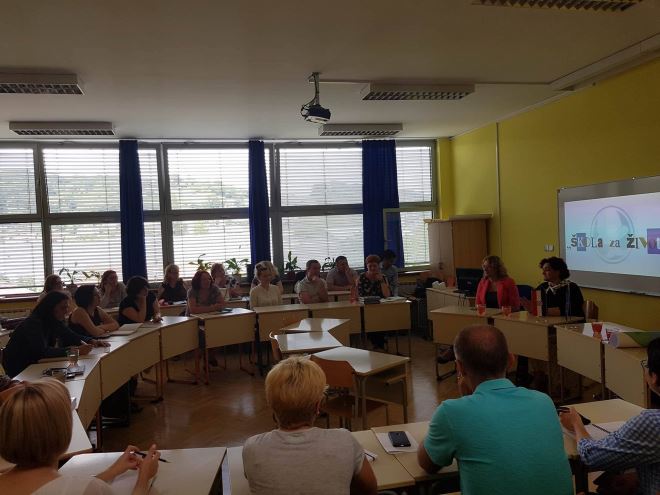Tako je u Gimnaziji Antuna Gustava Matoša pomoćnica ministrice, zajedno s dvije stručne savjetnice iz radne skupine, Sonjom Rupčić Petelinc i Željkom Winkler, održala ogledni sat. Sve prisutne je u ime Gimnazije pozdravila ravnateljica Bibijana Šlogar, kao i zamjenica gradonačelnika Grada Zaboka Valentina Đurek koje nisu krile zadovoljstvo što se zabočka Gimnazija uključuje u program 'Škola za život'.