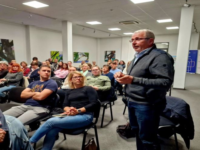 Publika svih uzrasta, od zainteresiranih gimnazijalaca do kroatista, nastavnika i ljubitelja znanosti i književnosti, pomno su slušali zanimljiva, poučna i do sada možda nekima novih otkrića iz života našega pisca, a koje je kroz zanimljiva pitanja i sugestije moderirala prof. Jasna Balaško.