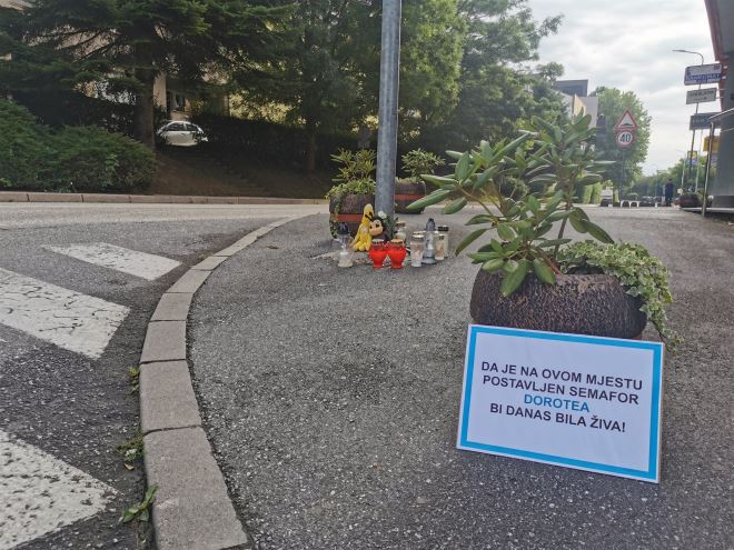 No na tabli koja je osvanula kod nesretnog raskrižja u Zaboku piše sljedeće: „Da je na ovom mjestu postavljen semafor, Dorotea bi danas bila živa“.