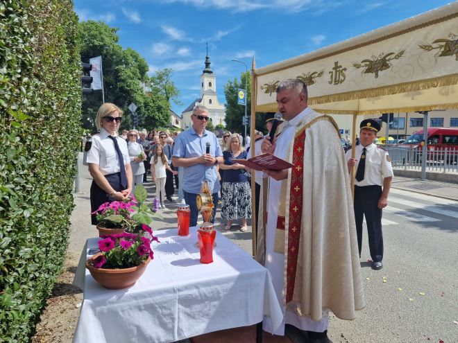Nakon misnoga slavlja uslijedila je procesija sa Presvetim Oltarskim Sakramentom kroz naš grad Zabok, gdje su bile pripremljene sjenice. Procesija se sastojala od branitelja, vatrogasaca DVD-a Zabok, lovaca, Gradskog puhačkog orkestra, muškaraca, mladeži, djece, ministranata, žena, nositelja baldahina i vjernika koji su se okupili u velikom broju na današnje slavlje.