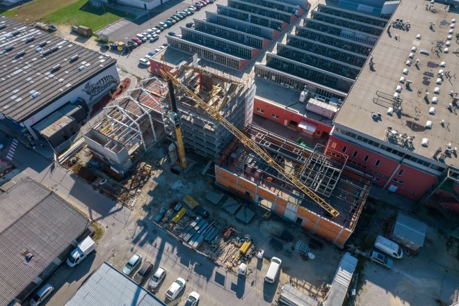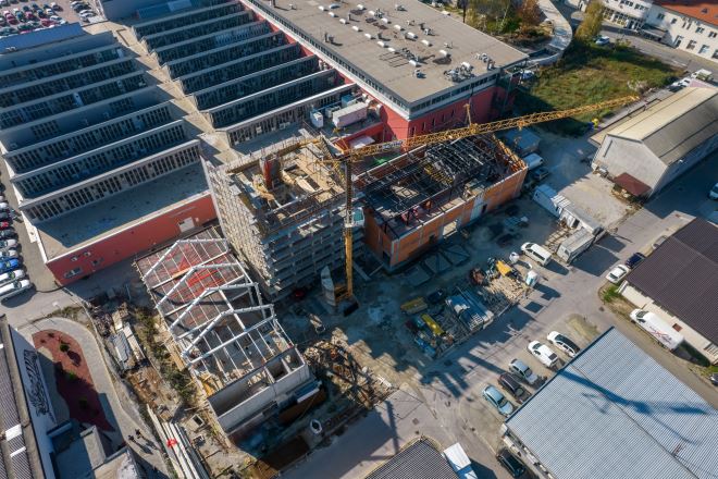 Na objektu re – GENERATORA montirana je čelična konstrukcija 'kaveza' za klimu na krovu, a u tijeku je i ugradnja i montaža visoko profiliranog trapeznog lima na krovu. Izvedeni armirano-betonskih radovi stupova i greda nosive konstrukcije, te zidovi okna dizala na 1. katu kao i zidarski radovi zidanja opekom vanjskih zidova 1. kata.