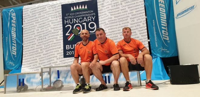 Ivan Cvetko, Robert Burić i Nenad Krznar iz Crossmintonskog kluba S.R.U.Z. na svjetskom prvenstvu u Budimpešti