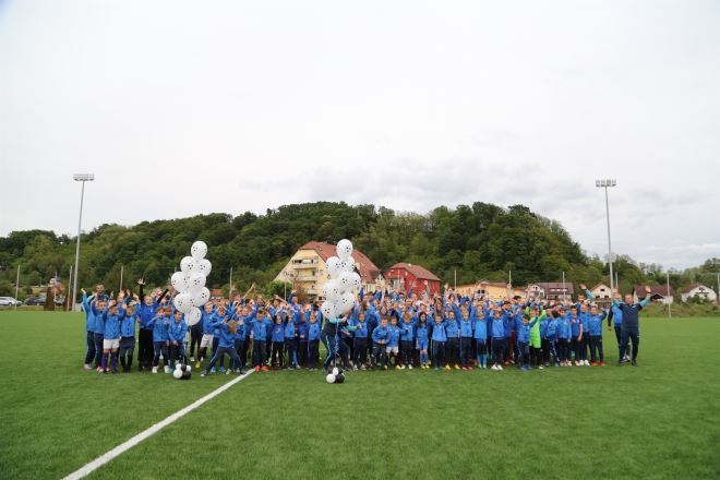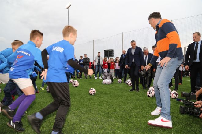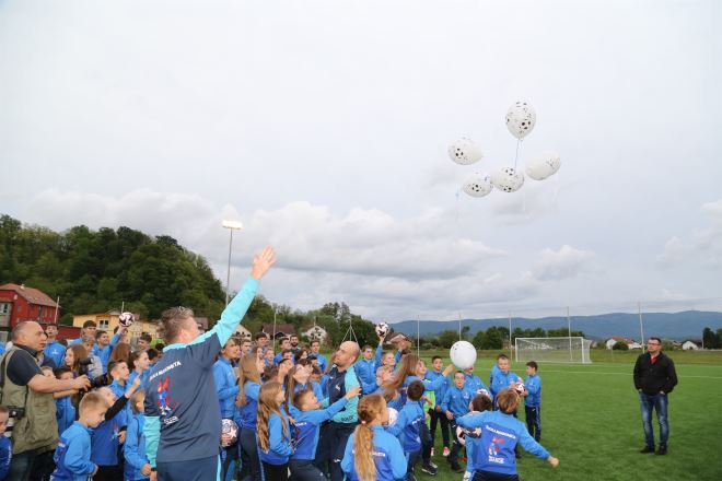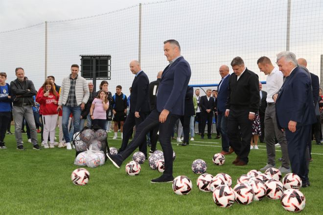 Na novi travnjak istrčalo je i dvjestotinjak polaznika ŠN Mladost, kojima su uzvanici uručili nove nogometne lopte.