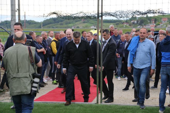 Kao što smo napomenuli, velikoj fešti pridružio se i predsjednik RH Zoran Milanović, koji nije davao izjave za medije, ali je zajedno sa županom Kolarom, gradonačelnikom Hanžekom, predsjednikom HNS-a Kustićem i članovima Uprave NK Mladost Zabok na čelu sa saborskim zastupnikom Sinišom Hajdašom Dončićem, čija je supruga Martina Hajdaš Dončić izvršna direktorica kluba, obišao umjetni travnjak.