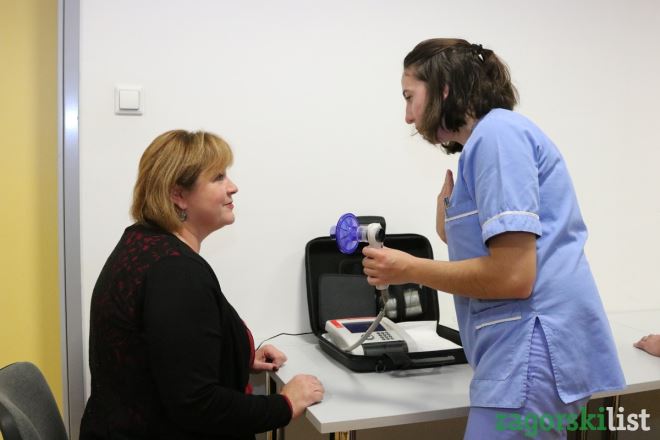 - Cilj akcije je povećati svjesnost o KOPB-u kao jednoj od vodećih bolesti u pulmologiji. Kronična opstruktivna plućna bolest u Hrvatskoj je u najvećoj mjeri uzrokovana pušenjem cigareta. Bolest izazizva zaduhu tj. nedostatak zraka i kronični kašalj. Na spirometriju bi trebali doći su ljudi koji su dugogodišnji pušači, koji kašlju, imaju iskašljaj i koji kod napora imaju zaduhu koja je sve gora i javlja se kod mirovanja - rekla nam je doktorica Mirjana Oštrić, opći internist Opće bolnice Zabok na subspecijalizaciji iz pulmologije u Kliničkoj bolnici Dubrava koja je napomenula da je vid prevencije prestanak pušenja. Kaže da se mladim osobama se savjetuje da ne počinju pušiti, a pušačima da prestanu s pušenjem cigareta. - Osim pušenja do KOPB-a dolazi zbog genetske sklonosti, ali 99% bolesnika su pušači. To je populacija srednje životne dobi, odnosno starijih od 45 godine života. Stariji bolesnici su ugroženiji - rekla je doktorica i dodala kako ovom aktivnosti OB Zabok želi skrenuti pažnju na bolest i možda nekog potaknuti da prestane pušiti i da se napravi spirometrija jer ponekad se bolest može dijagnosticirati i prije nego se pojave simptomi. Kad se bolest liječi u ranoj fazi, rezultati liječenja su bolji. Oštrić je napomenula da se da se spirometrija može napraviti u OB Zabok s uputnicom bez naručivanja.