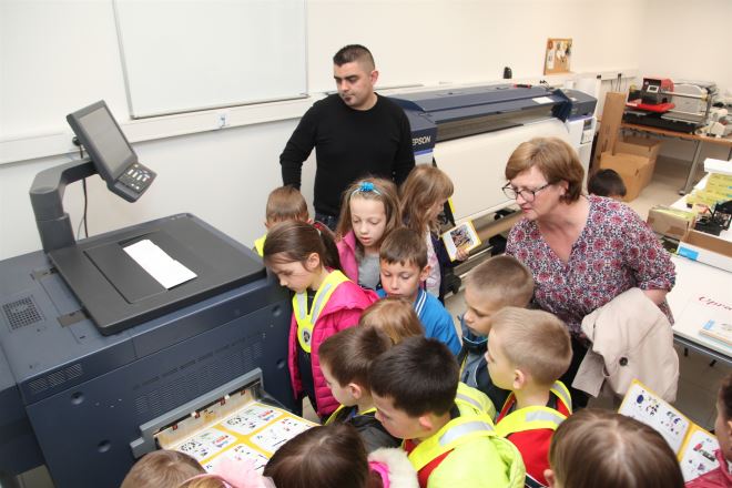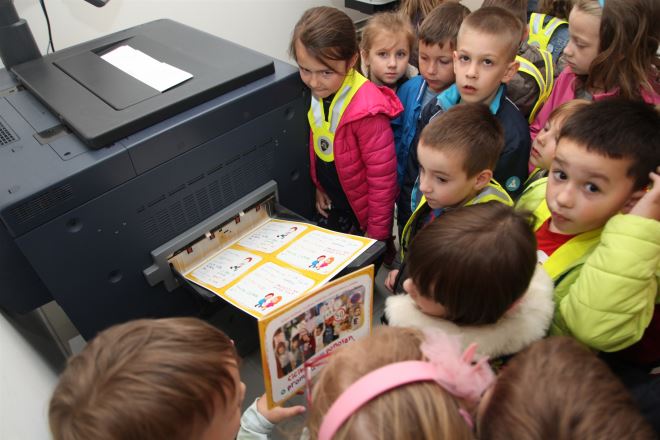 Mališani su posjetili i prostorije grafičke pripreme te pogledali kako nastaje njihova slikovnica o prometu koju će uskoro promovirati u Gradskoj knjižnici.