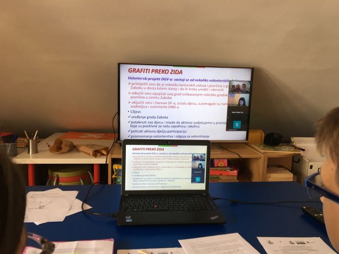 Po izboru Dječjeg povjerenstva, na Susretu su predstavljeni i proglašeni najoriginalniji Naj-projekti Dječjih vijeća u 2020./2021. godini, a koje pokreću djeca zajedno s odraslima u svojim lokalnim zajednicama. Naj-projektima proglašeni su projekti „Djeca Križevaca za djecu Gline“ i „Igrajmo se i rastimo zajedno“, Dječjeg vijeća Križevaca, a najviše je bodova za najoriginalniji projekt osvojio projekt „Grafiti preko zida“ Dječjeg gradskog vijeća Zabok. Dječje gradsko vijeće DND-a Zabok predstavljali su dječji vijećnici Jakov Kolar i Sara Premerl Peštaj koji su imali specijalnu čast i predstaviti zabočki Naj-projekt. Volonterski projekt „Grafiti preko zida“ sastoji se od nekoliko volonterskih akcija kojima su djeca odlučila uljepšati svoj grad oslikavanjem nekoliko gradskih površina u centru Zaboka. Tako je izgrafitiran i oslikan betonski zid na glavnoj ulici u Zaboku s dva slogana „Kad sva prava imaš onda štimaš“ i „Smeće odvajaj i Zemlju obnavljaj“, oslikan je pano na Trgu K.Š. Đalskog na temu „Zeleno nas zove kako bi nam u gradovima bilo bolje“, obojane su gradske tegle (žardinijere) za cvijeće te je oslikan betonski zid na staroj zgradi policije ispred DND-a pod sloganom „Dječja prava naša su furka“.