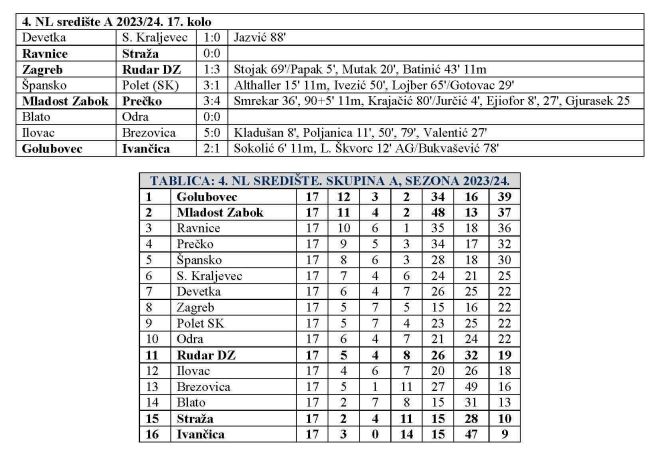 Mladost Zabok poražena je na svom travnjaku u 17. kolu IV. NL-središte Zagreb – skupina A. Bolje je bilo Prečko, a krajnji rezultat bio je 3:4, nakon što su gosti već u 27. minuti vodili s 4:0. Zabočani su se malo probudili u nastavku, ali prekasno za barem bod.