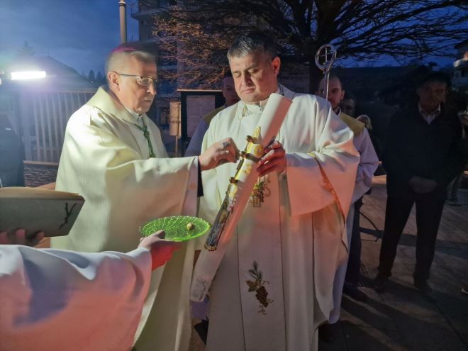 Ovo slavlje smo započeli okruženi mrakom koje označava silu tame i grijeha, no blagoslovom novog ognja i hvalospjeva uskrsnoj svijeći – odnosno Isusu Kristu koji je svojim uskrsnućem uništio taj mrak smrti i grijeha te nam donio jednu novu nadu nama vjernicima ljudima koja je temelj naše vjere. Taj dokaz da je Isus danas živ i prisutan među nama smo mi jer nas je ponukalo srce, duh božji, duh Isusov koji nas iz nedjelje u nedjelju, iz dana u dan sabire i poziva na euharistijska slavlja, zajedničku molitvu i slušanje Božje Riječi. Svojim uskrsnućem Isus nam je oprao grijehe, očistio od svih zala te nam je istovremeno otvorio vrata neba. Kad god zapalimo svijeću u crkvi, u svojim domovima, na grobljima ta svijeća nam govori o Isusu Kristu koji je uskrsnuo no istovremeno nam govori o životu naših preminulih. S Isusom Kristom probuđena je nada o vječnom životu koji ne prestaje nikada.