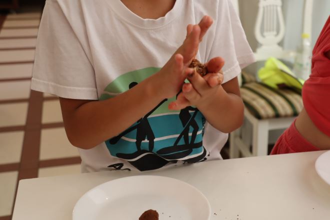 Nakon igre sortiranja zdravih i nezdravih namirnica pripremao se ukusan i zdravi smoothie – Zelenko, umak od suhih rajčica i pelatea, Humus – namaz od slanutka i naravno zdrava slastica – Orijentalne sezamove kuglice sa suhim grožđicama, marelicama, brusnicama i datuljama, tzv. energetska bomba. Koristile su se zdrave raznolike namirnice, kao što su svježe voće i povrće, sjemenke te orašidi, bogati mineralima, vitaminima, biljnim masnoćama i prirodnim šećerima. Djeca su rezala i sjeckala povrće kako bi dekorirala svoje zdrave sendviče s humusom, a na kraju su sve degustirali i slasno pojeli! Za uspomenu na radionicu djeca su dobila bedževe s porukama, olovke i privjeske Zdravo i fino te recepte kako bi mogli i doma sa svojim roditeljima spremati zdrava i fina jela.