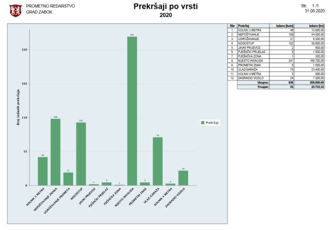 - Tijekom svog rada i obnašanja dužnosti, prometni redari ističu središte grada kako sa sjeverne tako i sa južne strane željezničke pruge kao područje najvećeg broja nepropisno zaustavljenih i parkiranih vozila. Što se tiče eventualnog smanjenja broja prekršaja teško je komentirati sam broj s obzirom da nemamo evidentiran broj prekršaja iz prethodnih godina za isto razdoblje no prometni redari ističu kako je primjetna povećana kultura u prometu i sve veći broj vozača koji se pridržavaju Zakona i propisno parkiraju – objasnili su iz Grada Zaboka. Što se pak tiče novčanih kazni, one su za nepropisno zaustavljanje i parkiranje vozila propisane su Zakonom o sigurnosti prometa na cestama. Za nepropisno zaustavljanje i parkiranje novčana kazna iznosi 300 kuna, a za parkiranje vozila na mjestu rezerviranom za osobe s invaliditetom novčana kazna je 700 kuna. Za nepoštivanje ograničenja, zabrana i obveza izraženih pomoću postavljenih prometnih znakova propisana je novčana kazna od 500 kuna. Novčanom kaznom u iznosu od 5 000 do 15 000 kuna kaznit će se za prekršaj vlasnik vozila, odnosno osoba kojoj je vozilo povjereno ili odgovorna osoba u pravnoj osobi ako, u roku od 15 dana, ne da vjerodostojan dokaz o osobi koja je upravljala vozilom u vrijeme počinjenja prekršaja. Na današnji dan (31. kolovoz) od početka vršenja očevida i utvrđivanja prekršaja po nekoj od osnova iz Zakona o sigurnosti prometa na cestama, temeljem riješenih prekršajnih postupaka u gradsku blagajnu uplaćeno je 98.805,67 kuna.
