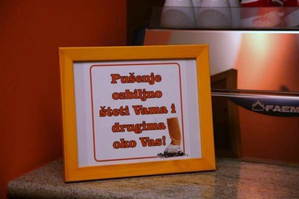 - Prvenstveno sam se opredijelila da objekt bude za pušenje jer nemam dovoljno prostora za veliku terasu. Mogu staviti eventualno dva do tri stola van. Primijetila sam da i nema puno pušača, ali ako u društvu jedan od njih pet puši svi odu za tim jednim. To je najveći problem u cijeloj toj priči – rekla je Koprivnjak. Postojeću je ventilaciju samo pojačala, jer prijašnji je vlasnik imao minimalne uvjete, dakle pet ventilacija. Ona je tako ugradila još jednu ventilaciju i filter, te osposobila kafić za stroge mjere pušačkog objekta, a to je deset izmjena zraka u jednom satu. Atest joj je napravila tvrtka Ekovent-Info d. o. o.