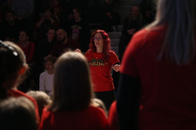 Ringa ringa raja, En ten tini, Do nam želi dobar dan, Kad si sretan, Dobro jutro, Kraljica jabuka i još brojne druge pjesme odzvanjale su dvoranom, na ponos svima, a posebno voditeljici zbora Jasenki Borovčak.