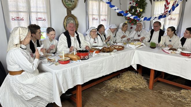 Uvijek se kod Jasnice, pripovijeda nam sama, skupi neka družina. Baš k'o nekad, muški razgovaraju o tome gdje nabaviti najljepši bor, a žene o tome što će pripremati za Božić. – Cimer se uvijek kitil v kutu i tome su se deca radovala najviše – kaže Jasnica, a upravo su taj običaj ovom prilikom oživjeli članovi i članice Ansambla Zabok. Baš kao nekad, svi su jedva dočekali da sjednu zajedno za stol u kušaju sve te delicije koje je Jasnica pripremila. - Pod stolom su za Božić deca spala na slami, a na stolu je navek bilo sega. Ali prvo smo se svi prekrižili i blagoslovili jelo i pilo – kaže Jasnica. Gibanice i kolači, purica i mlinci… Ali ipak su veselje, mir, dobra volja i ljubav najvažniji u blagdanskom okruženju, i to je ono što si svi želimo!