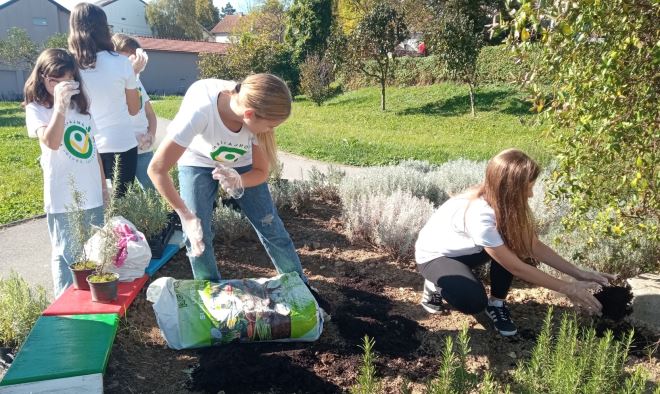U okviru volonterske akcija djeca volonteri okopali su cvjetnjak, oplijevili ga, posadili sadnice lavande i ružmarina, te sve skupa prekrili crvenim malčem da trajnice dođu do izražaja te da cvjetnjak bude ljepši. Osim cvjetnjaka pokupili su sitno smeće na zelenim površinama oko škole, te uredili prilaznu stazu zasadivši nekoliko biljaka. U realizaciji volonterske akcije pomoć i podršku pružilo im je stručno osoblje škole, pedagoginja, učiteljica i domar škole.