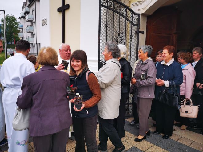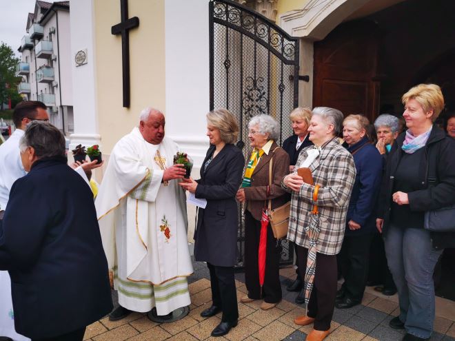 Župnik Marijan Culjak razveselio ih je nakon misnog slavlja darovavši im po dvije teglice cvijeća.