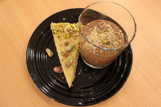 Za desert je pripremljena lagana torta s kremom od pistacija, limete i indijskih oraščića, kao i čokoladna krema (puding) od žitarice prosa i limuna, prezentirala je proljetni meni Snježana Krpes, voditeljica radionica zdravoga kuhanja.
