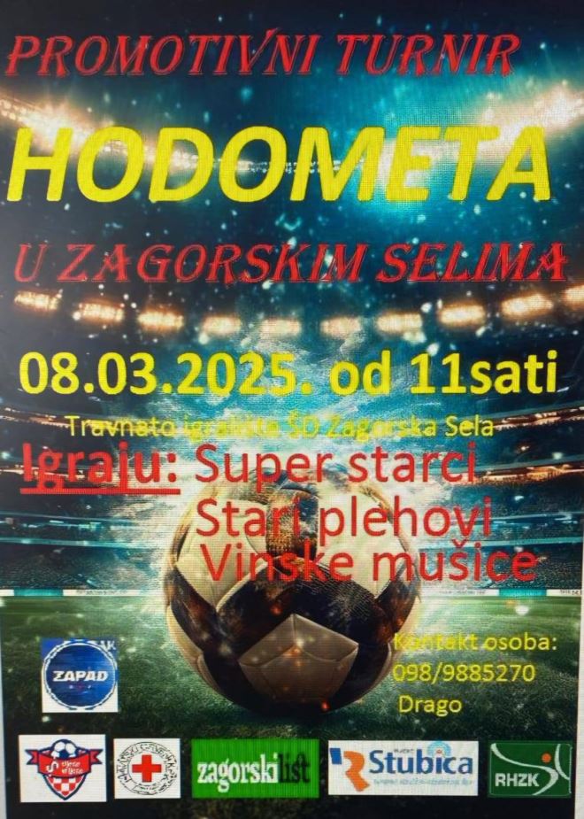 Turnir počinje u 11 sati i održat će se na travnatom igralištu ŠD Zagorska Sela. Za titulu najboljih natjecat će se tri ekipe sa zanimljivim nazivima – Super starci, Stari plehovi i Vinske mušice. Osim što će posjetitelji moći uživati u uzbudljivim utakmicama, očekuje ih i vesela atmosfera te druženje uz sport i zabavu.